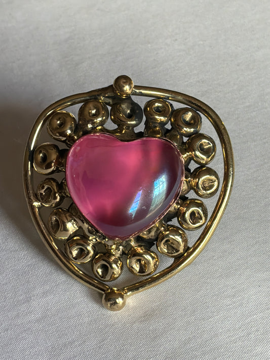 Sun Burst Sacred Glass Heart Ring & Alpaca Metal - Soft Pink