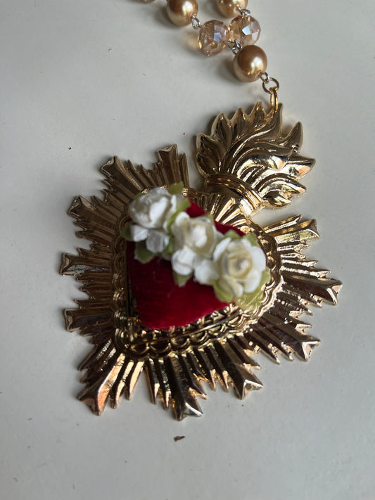 Rose Sacred Heart Rosary Necklace