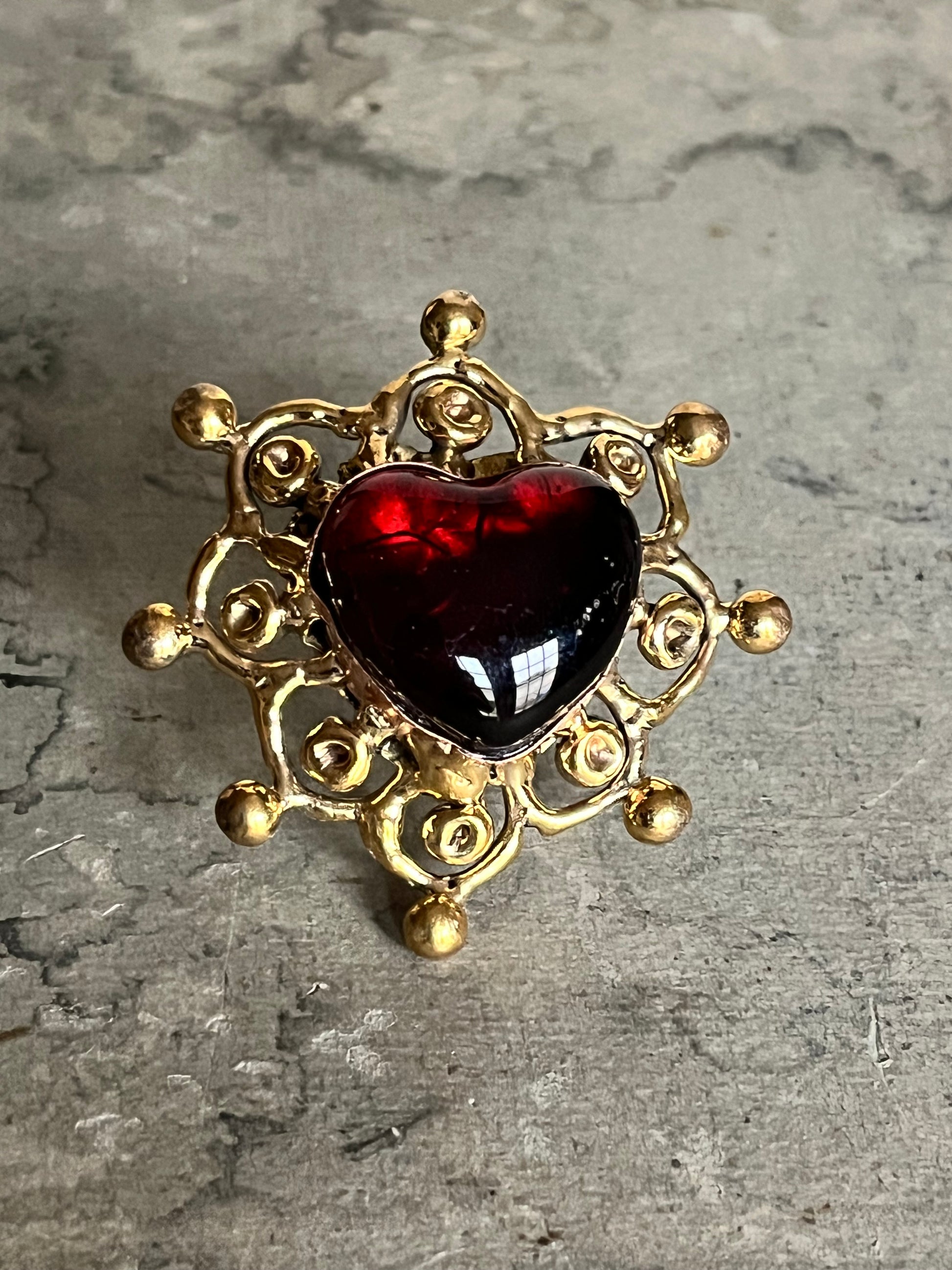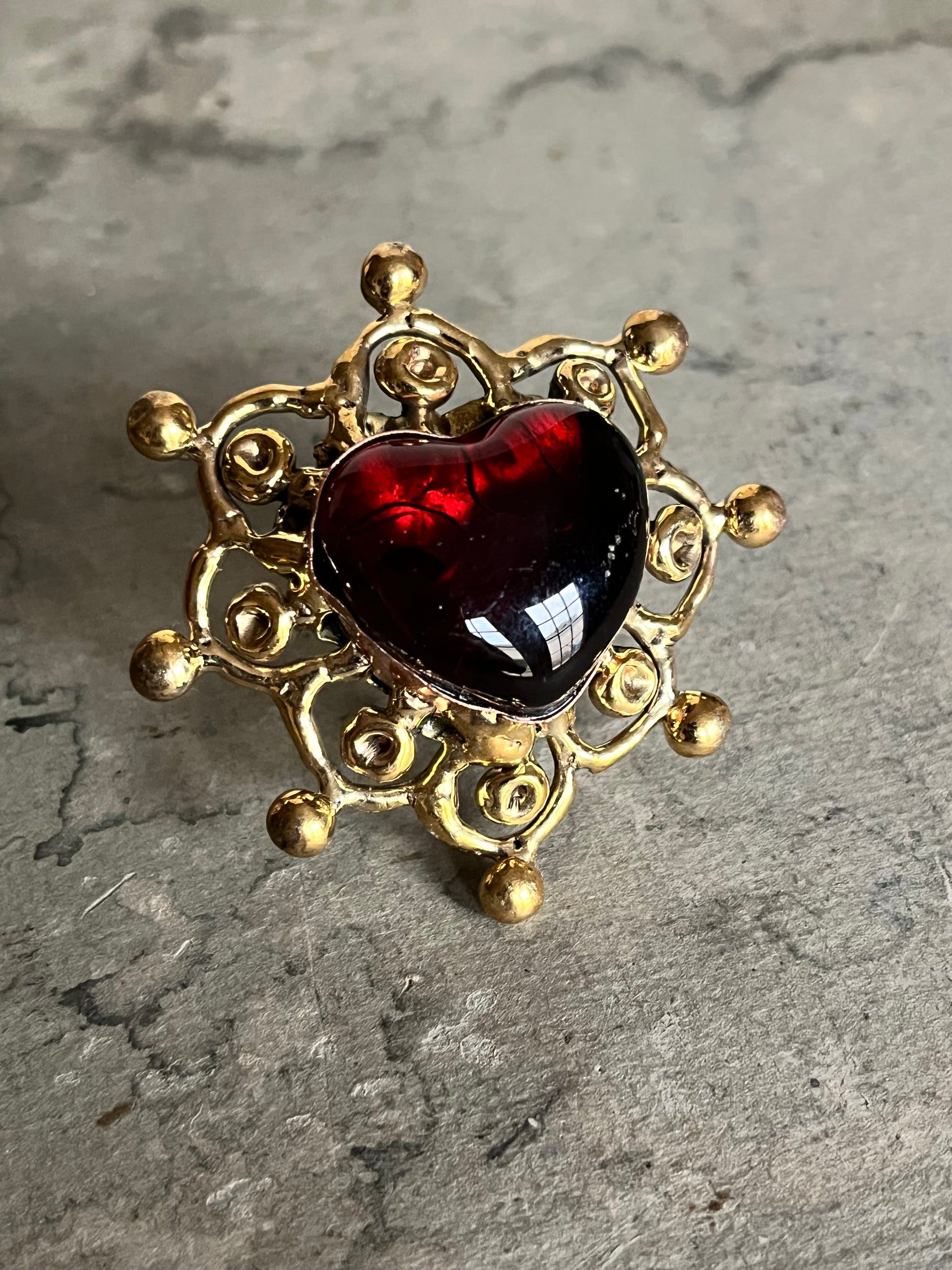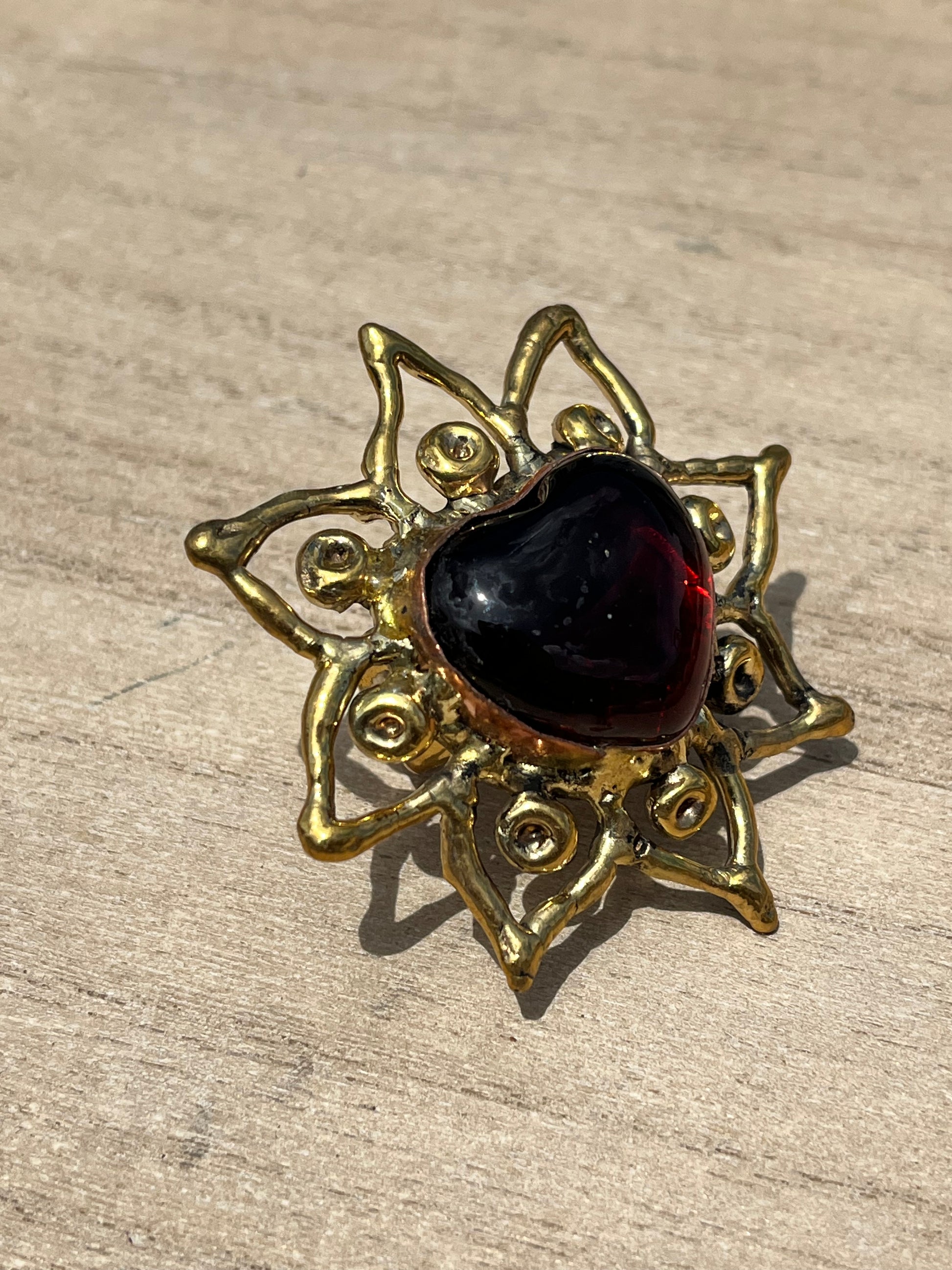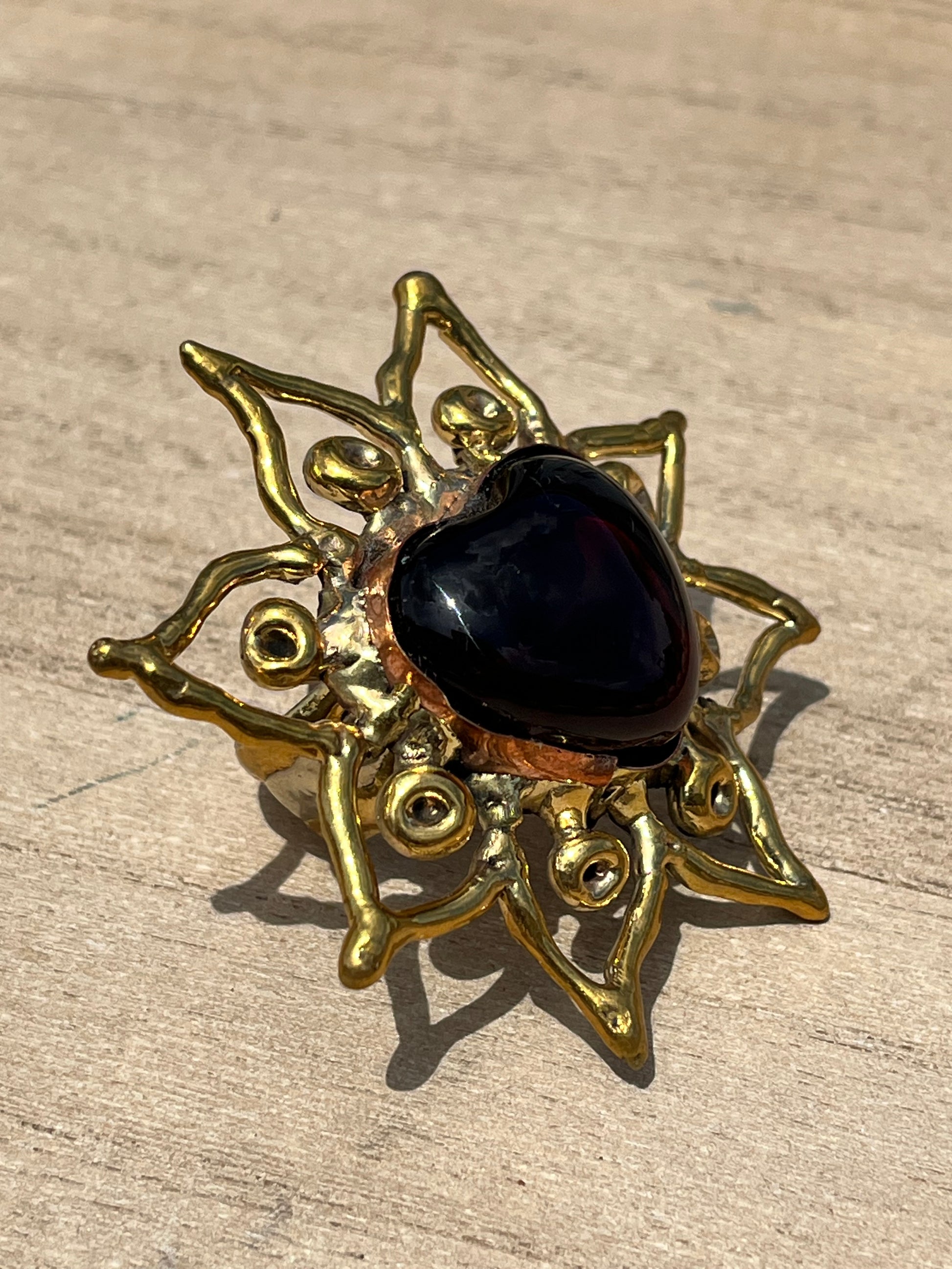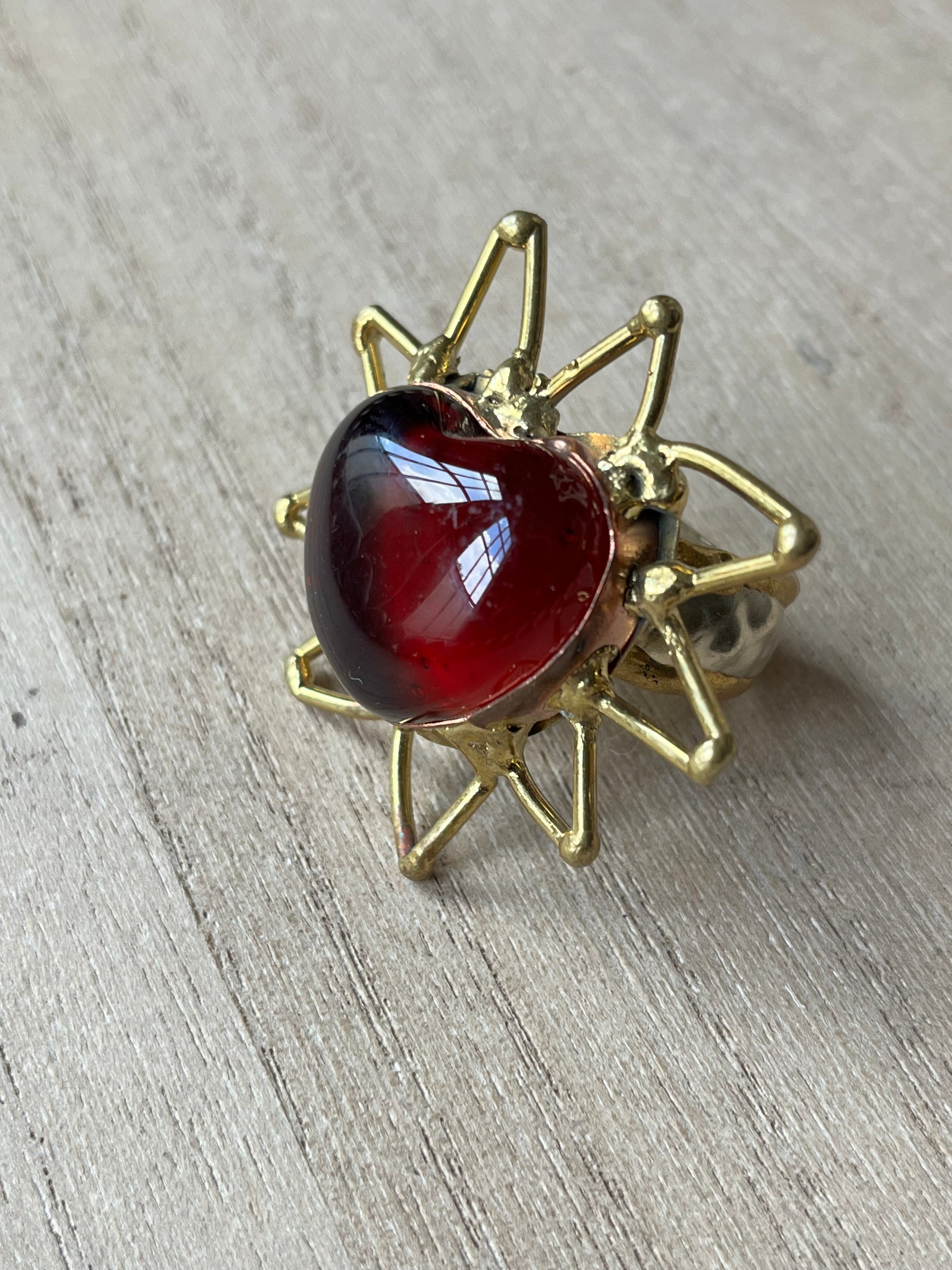 Handcrafted in San Miguel de Allende, this stunning ring features a vibrant red glass heart framed by a radiant sunburst design. Made from durable Alpaca copper alloy, each piece is a symbol of love, strength, and Mexican folk artistry. Each piece may vary when selected. Design may vary when shipping a product
