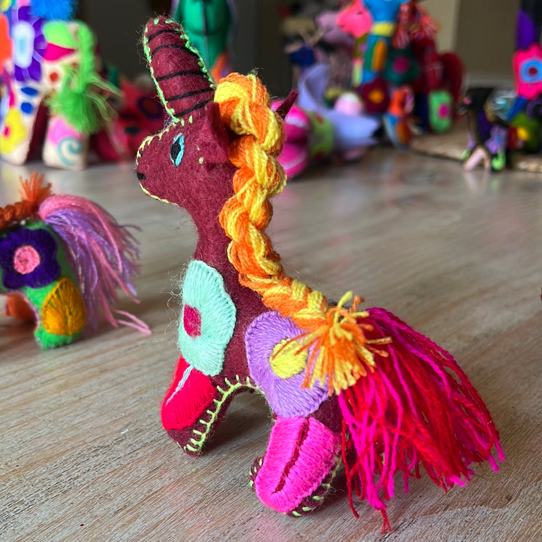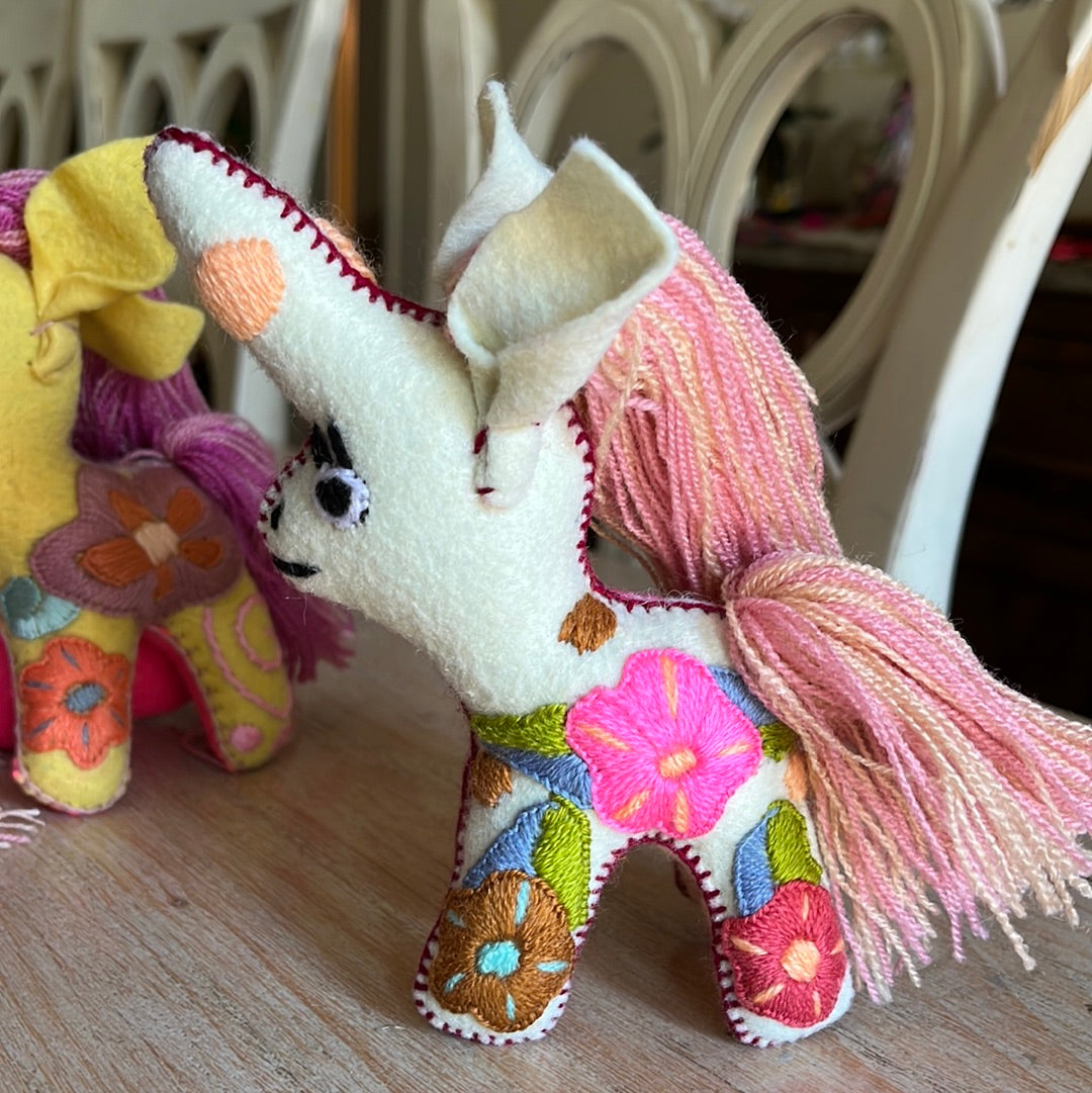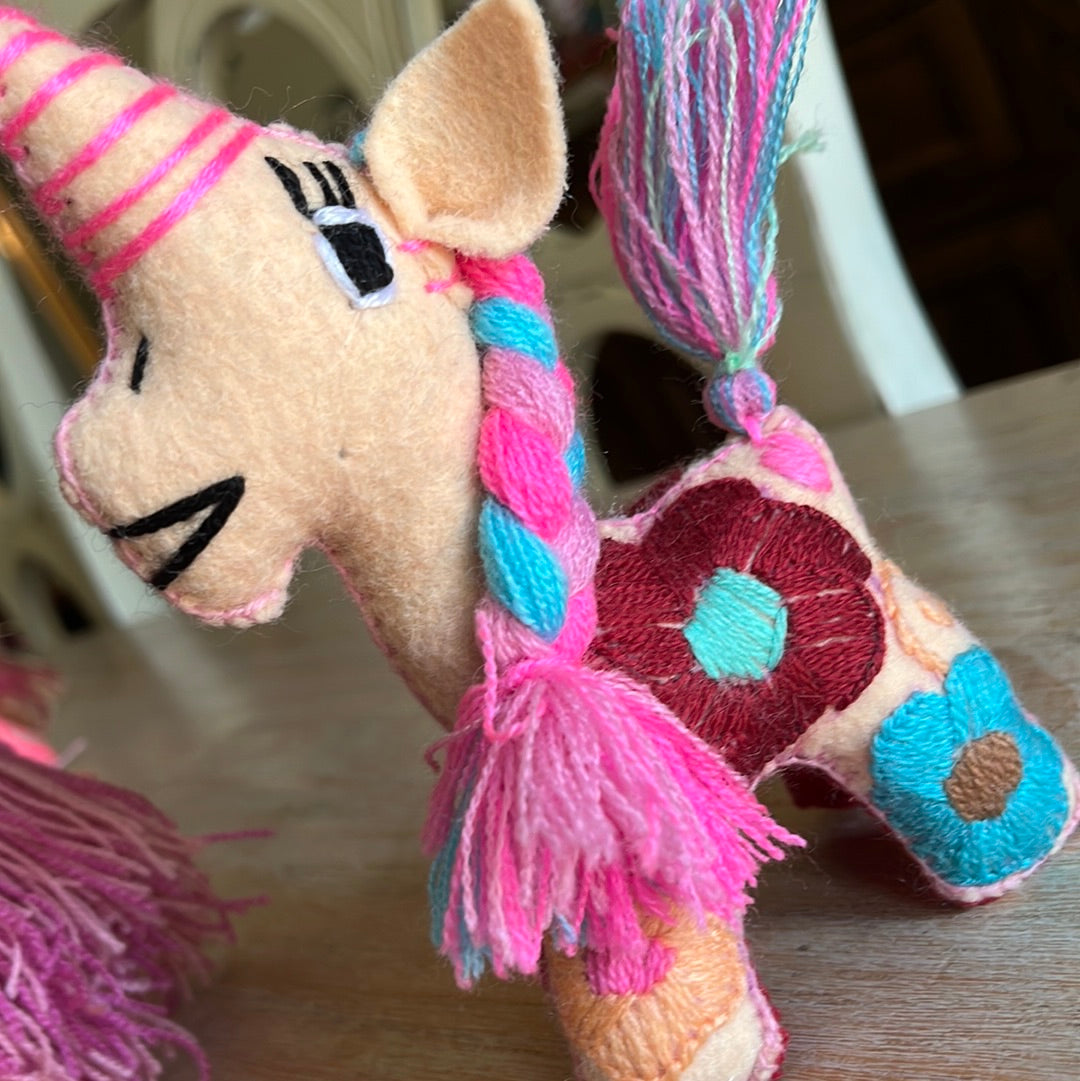 Embroidery mini 6” Unicorn Plushie from Mexico. Embroidery color design may vary upon ordering.