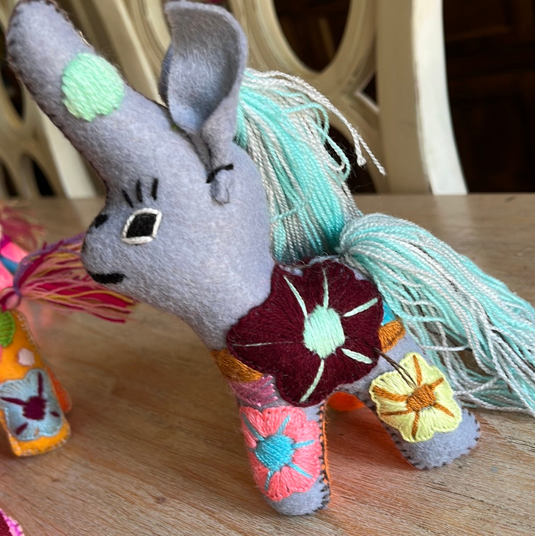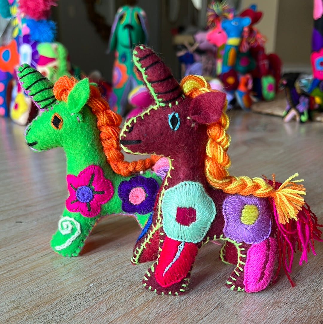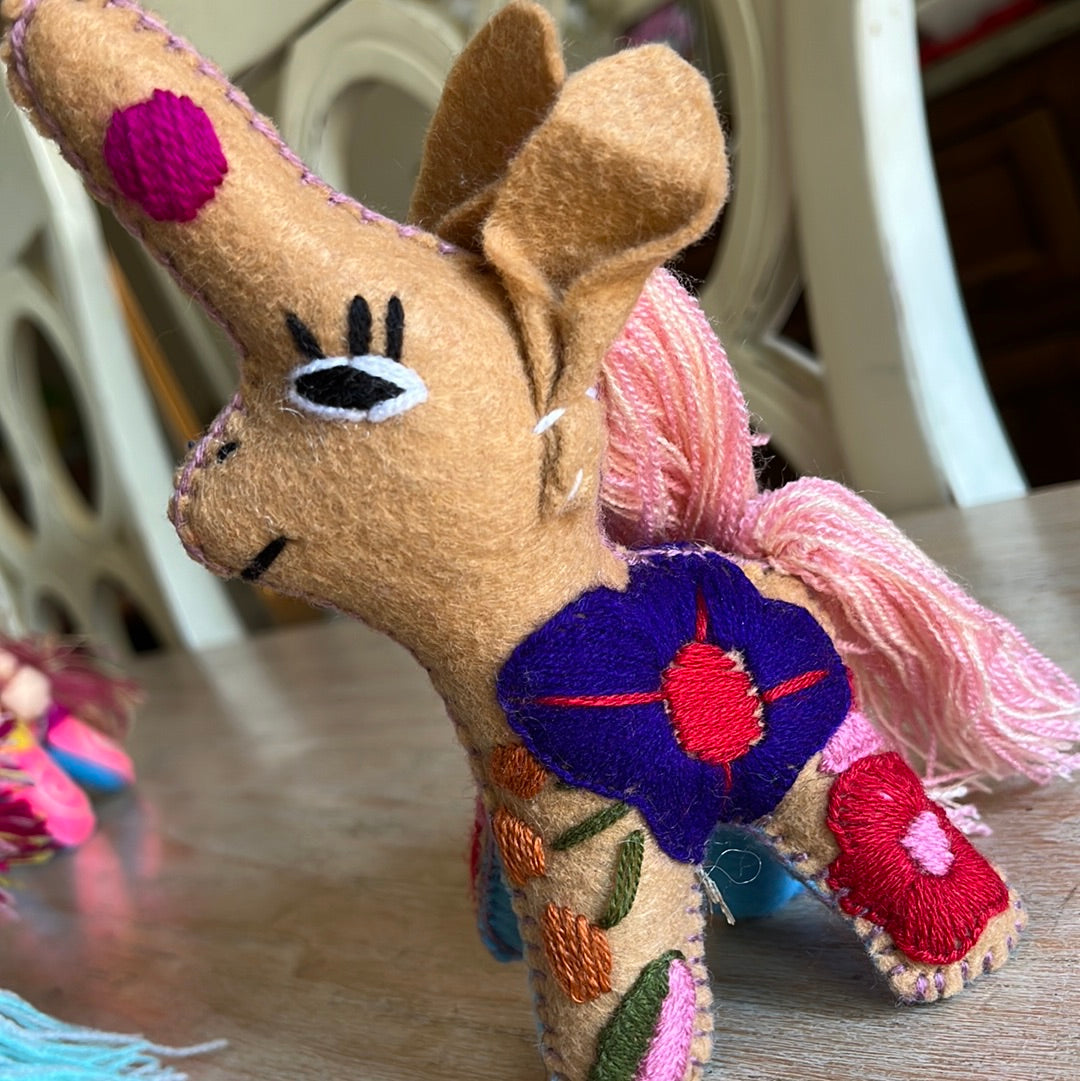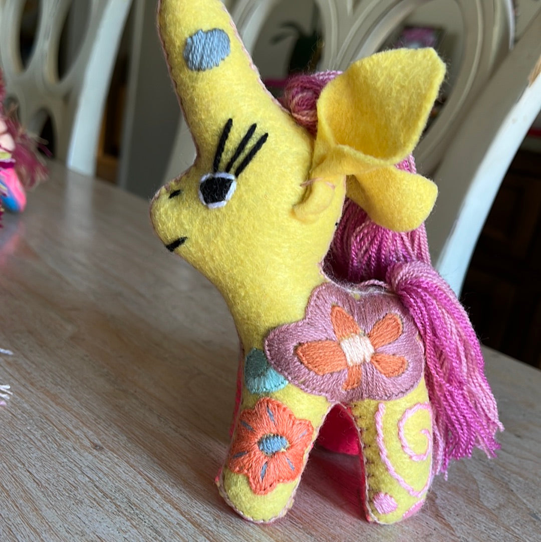 Embroidery mini 6” Unicorn Plushie from Mexico. Embroidery color design may vary upon ordering.