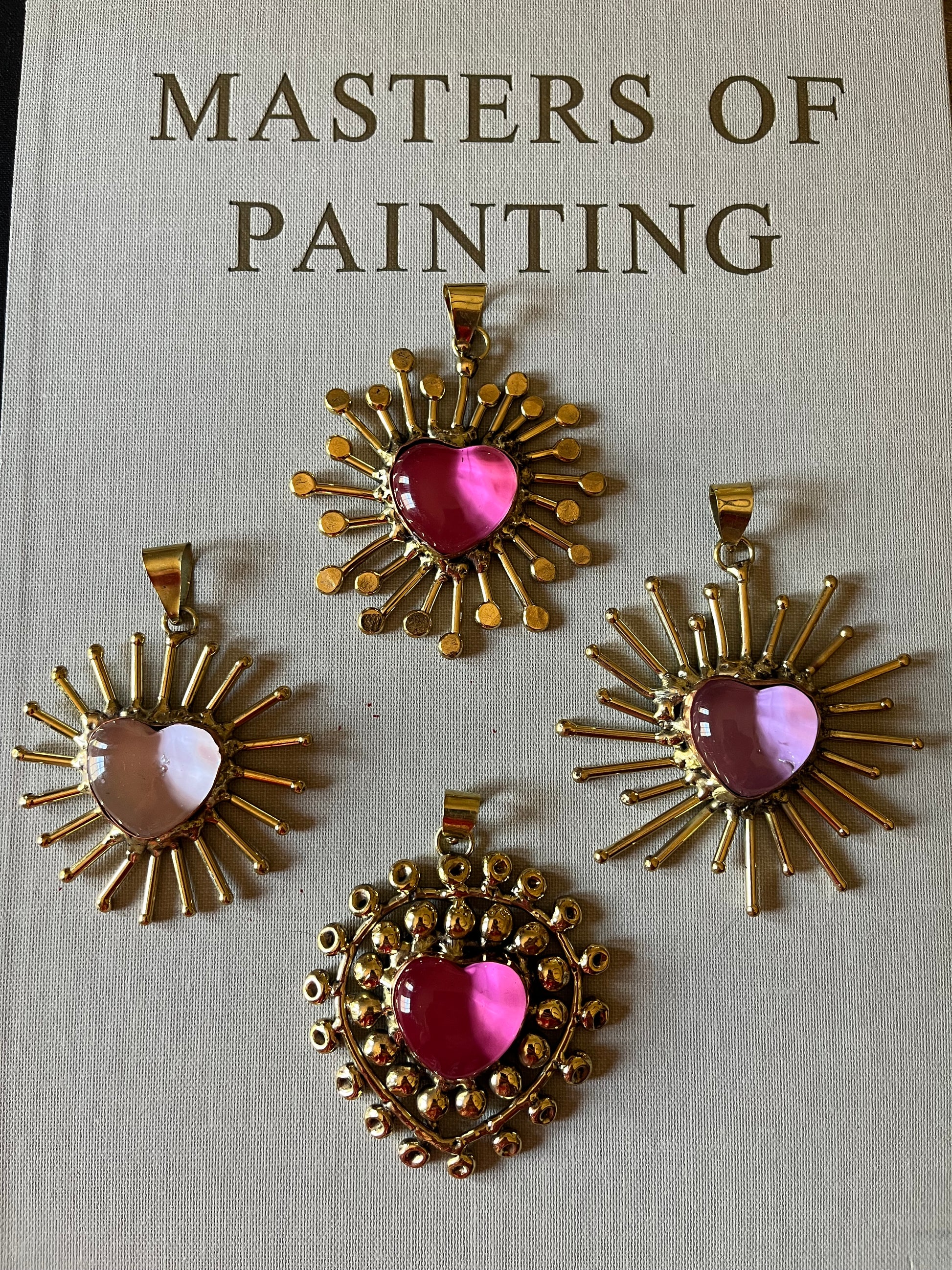 Sun Burst Sacred Heart Handmade pendent necklace – Glass & Alpaca from San Miguel de Allende