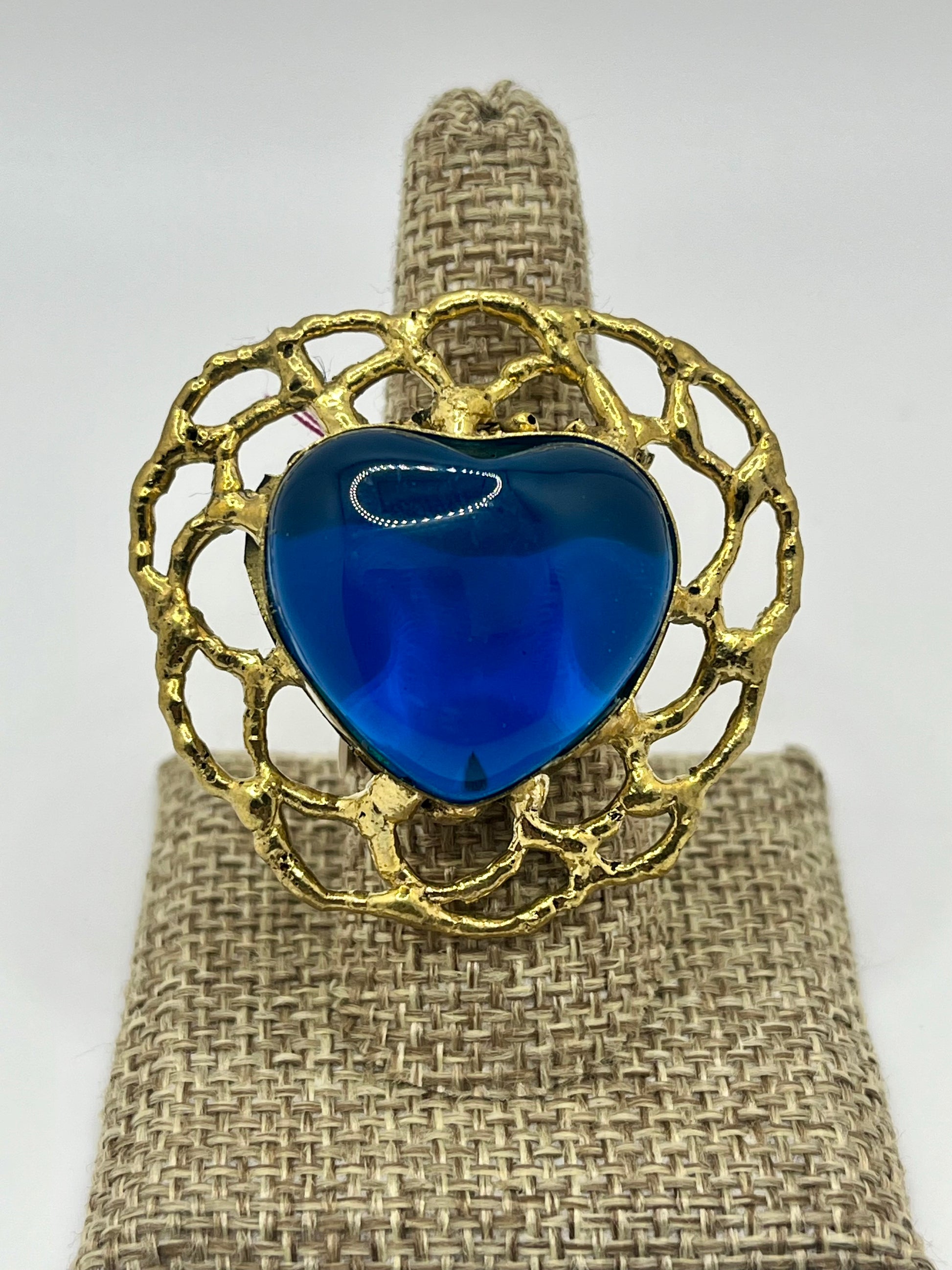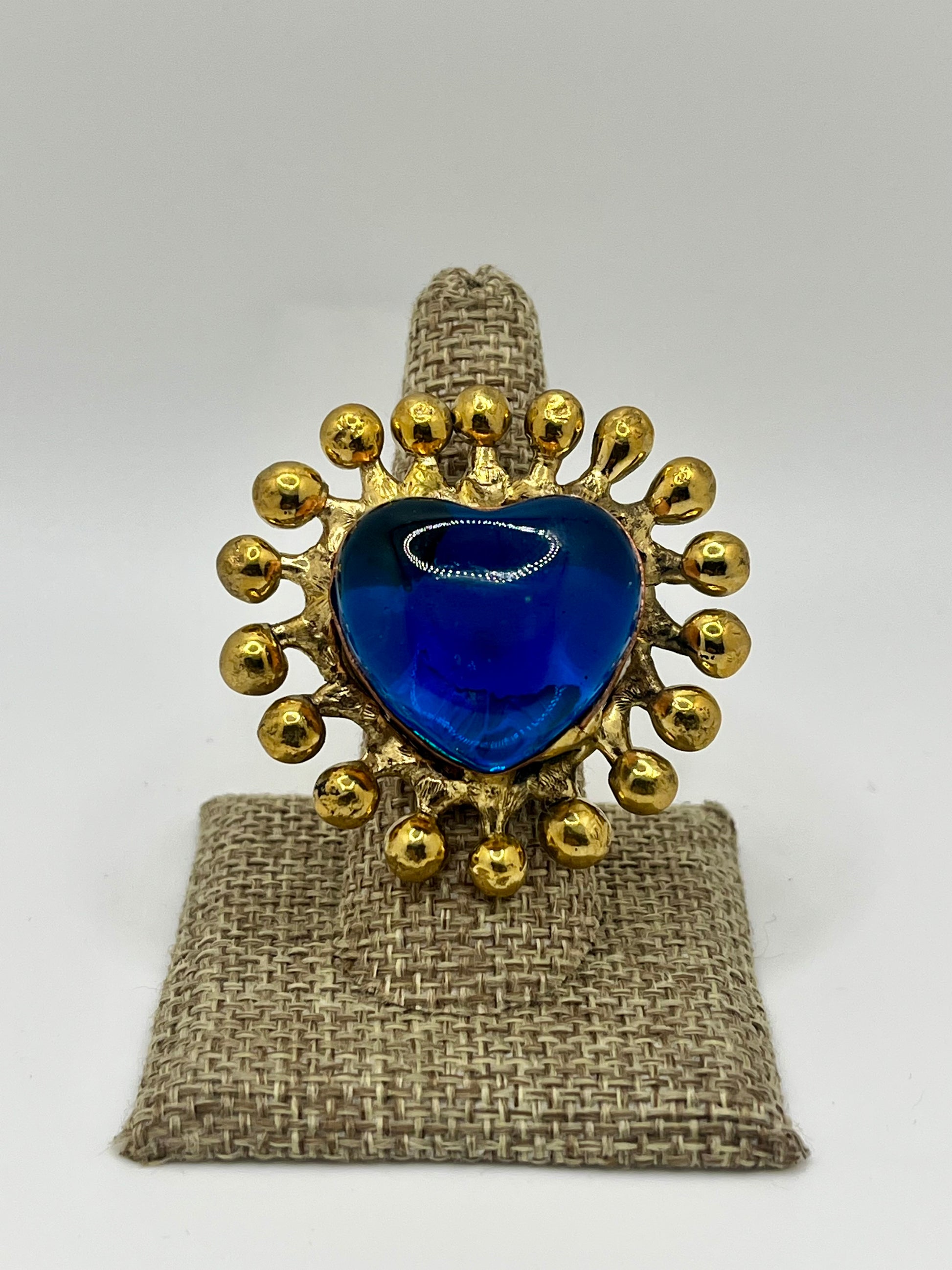 Sun Burst Sacred Glass Heart Ring & Alpaca Metal - Blue