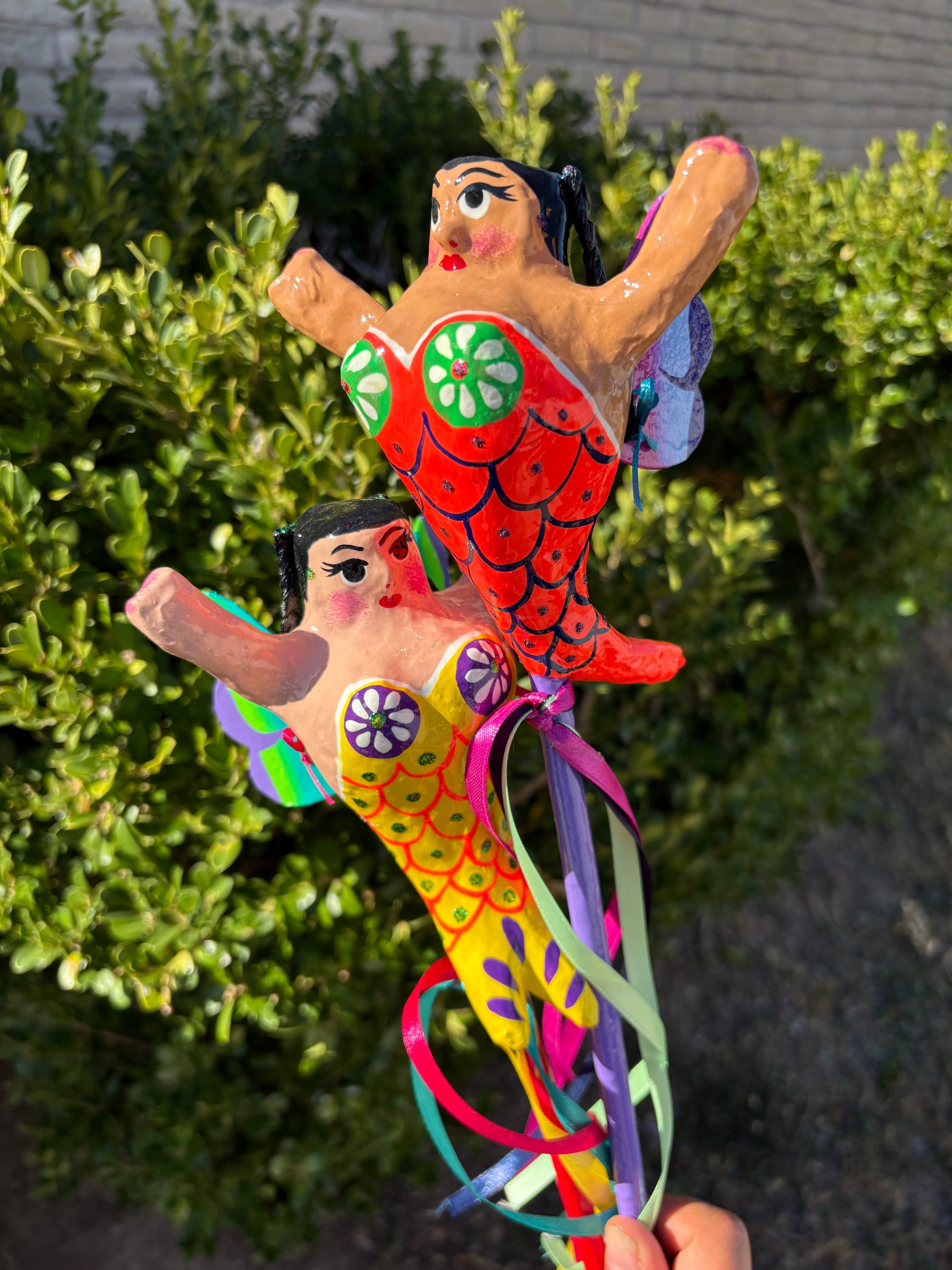 Add a burst of color, sound, and tradition to your celebrations with these vibrant handmade maracas from San Miguel de Allende, Mexico. Each piece is carefully crafted from papier-mâché and hand-painted by local artisans, featuring lively designs such as butterflies, flowers, musicians, and animals that reflect the region’s rich folk art heritage.
