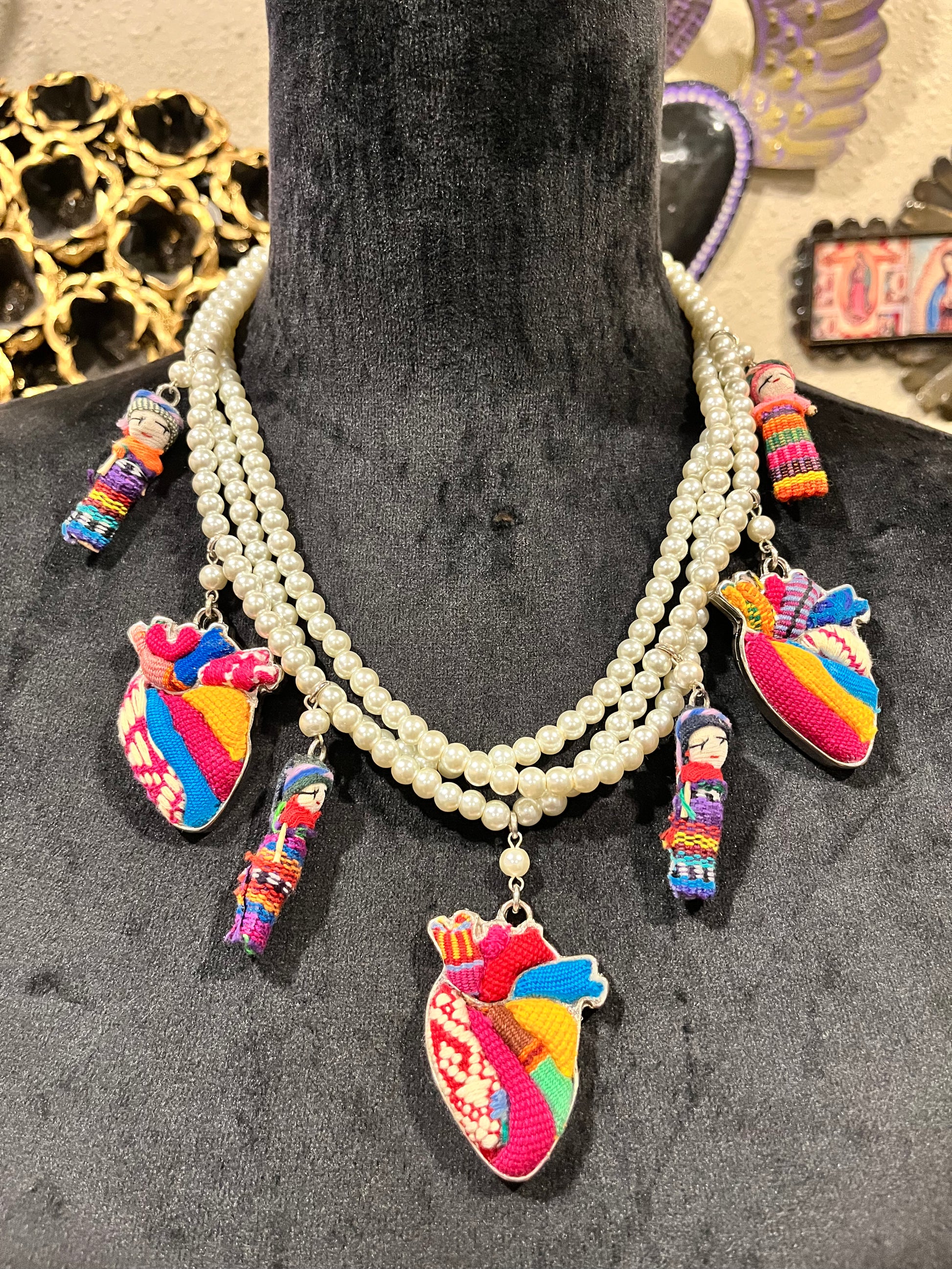 Quita penas Sagrado Corazón Necklace. Embroidery details multi beaded design perfect for all occasions
