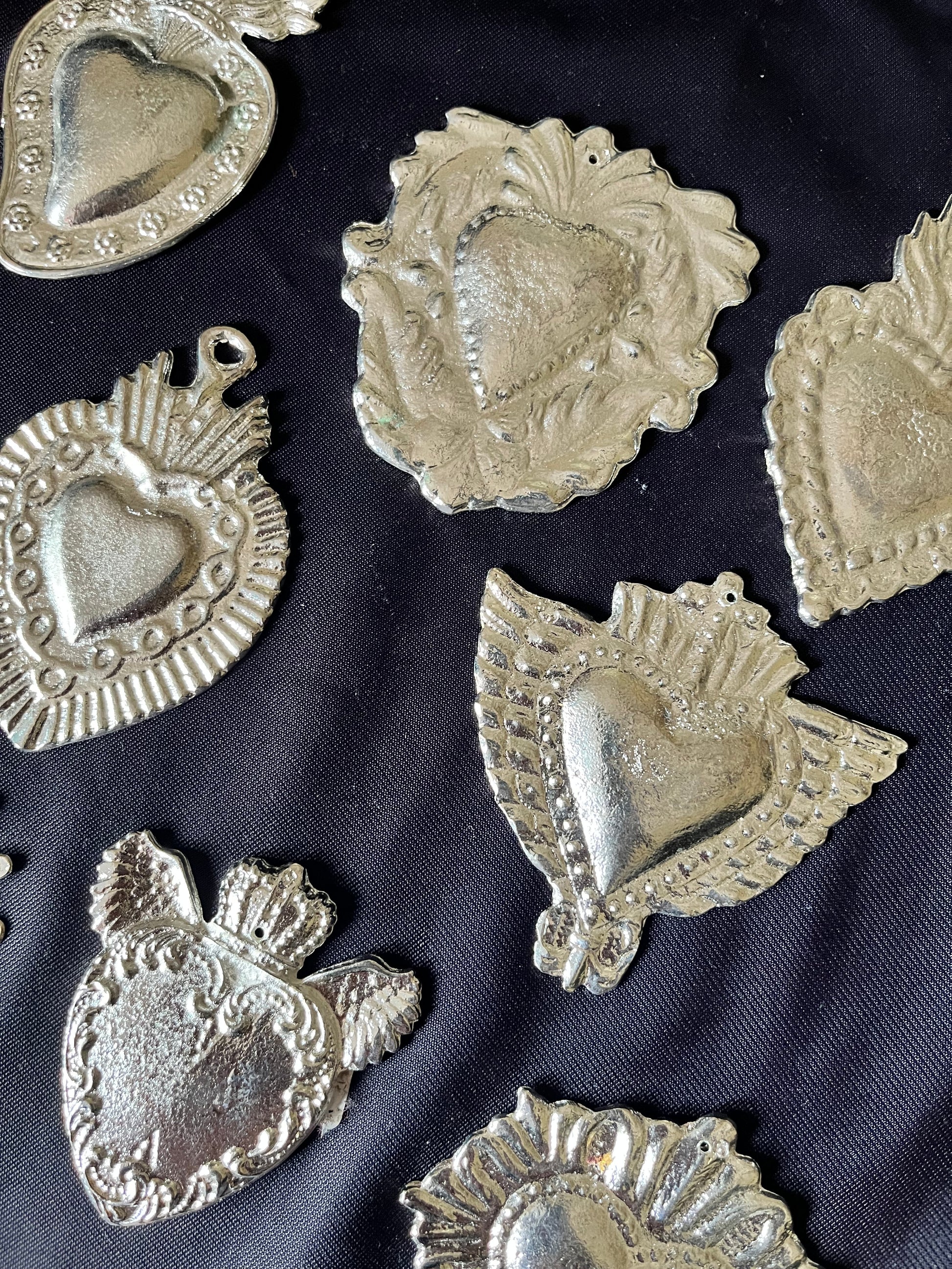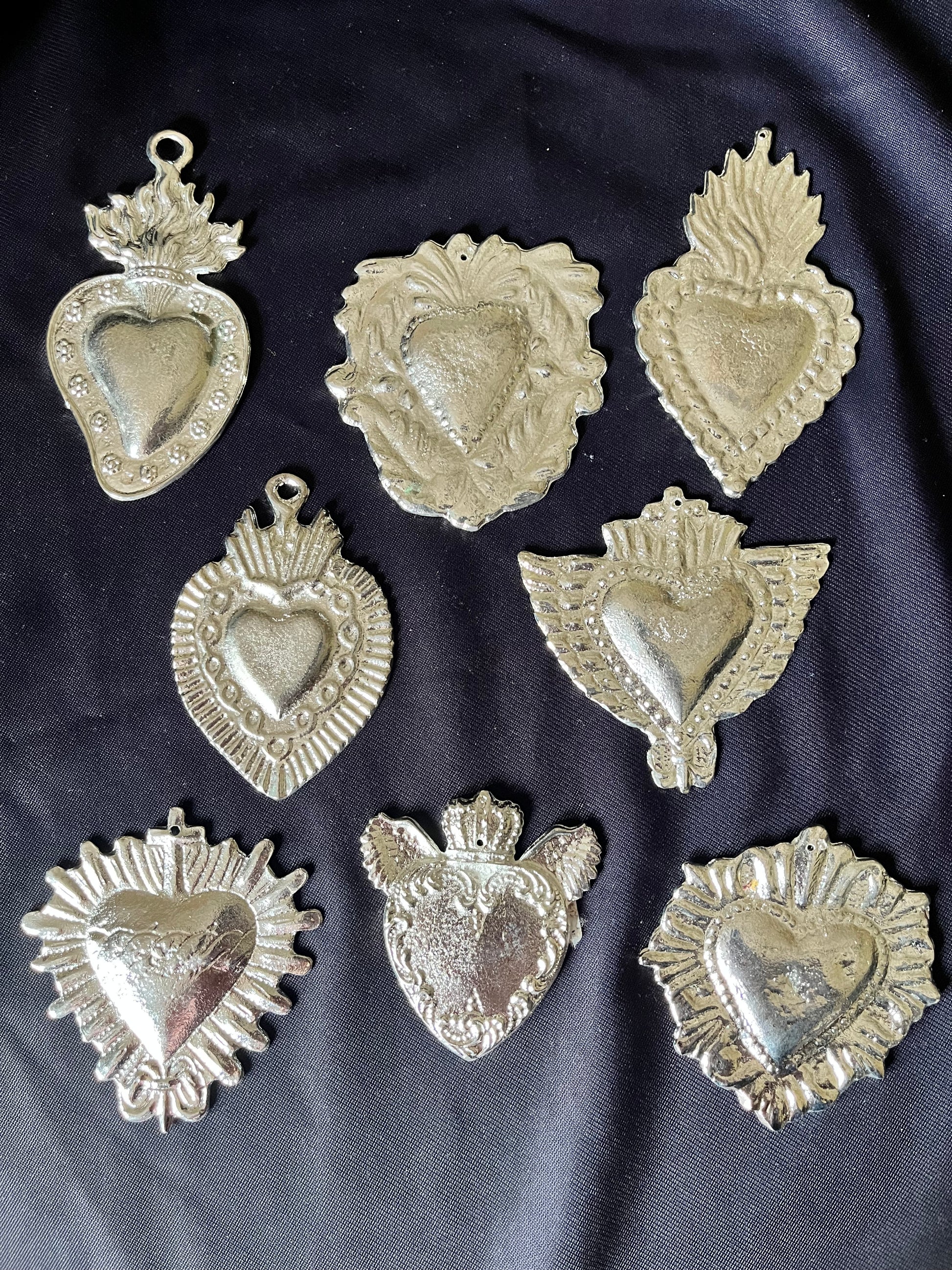 Ex-Voto Zamak metal sacred heart design 2” average directly from San Miguel de Allende DIY craft pieces ExVoto Milagrito